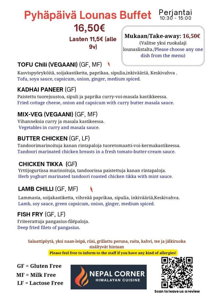 Experience a delightful mid-day escape with the rich flavors of Nepal. Our lunch offerings include a variety of dishes, from freshly prepared vegetarian delights to tender, spiced meats grilled to perfection. Complement your meal with aromatic rice, freshly baked naan, and flavorful curries that bring the essence of Nepal to your table. Whether it’s a quick bite or a leisurely lunch, Nepal Corner promises a satisfying and authentic dining experience.